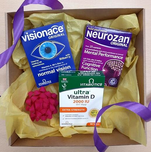 Viena vitamīnu un minerālvielu tablete dienā, satur A, B2 vitamīnus un cinku, kas palīdz uzturēt normālu redzi.